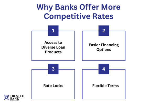 Not all lenders operate the same way. Banks often have advantages that directly benefit borrowers.